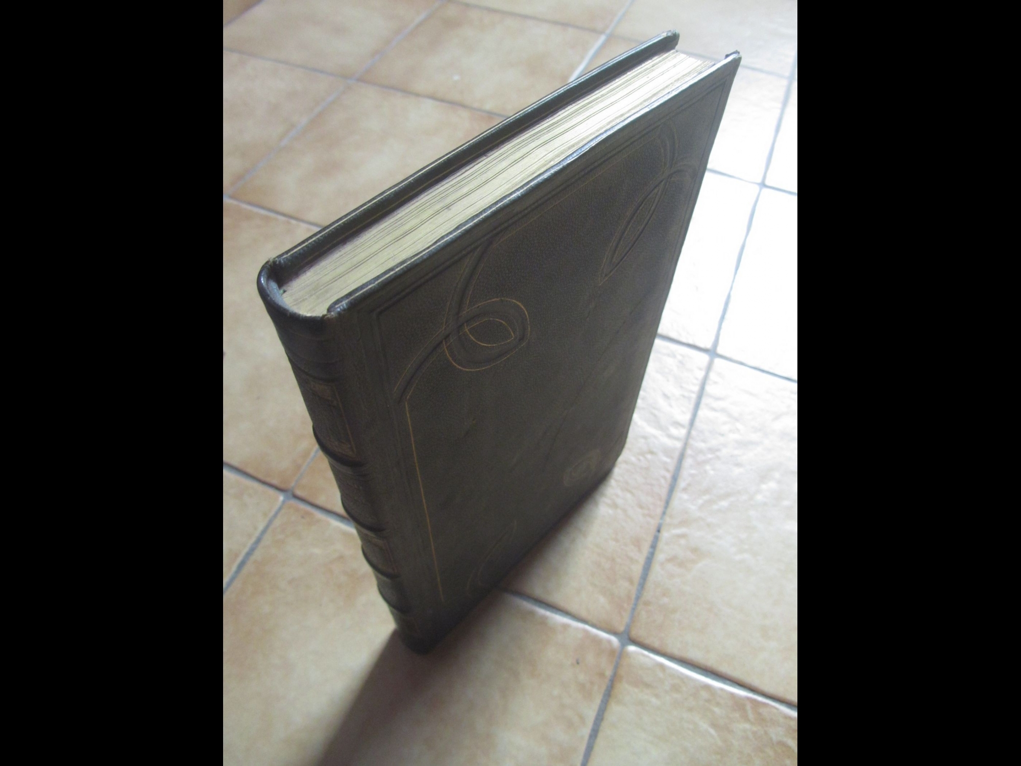 Relié, dos cuir, tranche de tête, caissons et titres